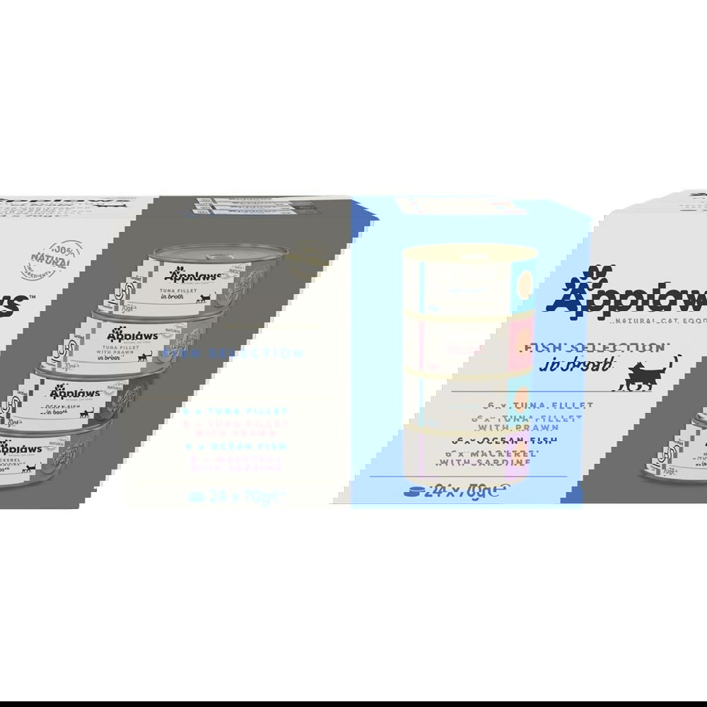Applaws Kalalajitelma liemessä 12 x 70 g on monipakkaus kissan märkäruokaa kalapaloina liemessä. 100 % luonnollinen aikuisen kissan täydennysravinto sisältää omega-3-rasvahappoja mm. ihon ja turkin hyvinvointiin. Liemi lisää kissan nesteensaantia ja auttaa siten ehkäisemään virtsatieongelmia. Herkulliset kissan märkäruoat sopivat tarjottavaksi täysravinnon ohessa. Applaws-märkäruoka ei sisällä mitään turhaa! Kolme maistuvaa makua: 4 x tonnikala 4 x merikala 4 x tonnikala ja katkarapu