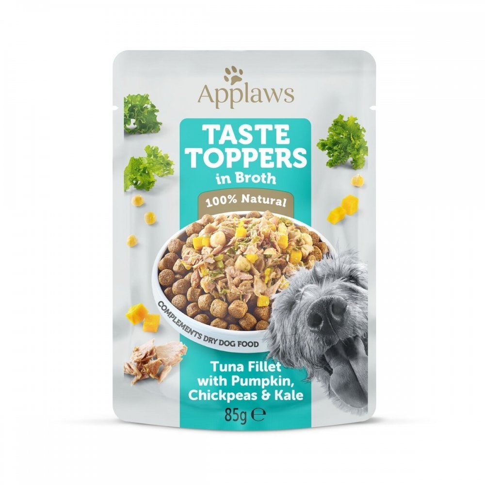 Applaws Taste Toppers tonnikala antaa vaihtelua koiran kuivaruokaan ja saa ruoan maistumaan herkulliselta! Valmistettu ensiluokkaisista raaka-aineista. Applaws Taste Toppers ei ainoastaan maistu herkulliselta, vaan se on myös terveellistä ja sisältää runsaasti vitamiineja, mineraaleja ja antioksidantteja. Laadukas tonnikala yhdessä kurpitsan, kikherneiden ja kaalin kanssa herkullisessa liemessä tekee joka ateriasta maistuvan elämyksen, jota koira odottaa! Erinomainen koirille, jotka kaipaavat vaihtelua kuivaruokaansa tai haluat hemmotella koiraa. Muista vähentää hieman koiran kuivaruokaa, kun käytät lisukkeita, jotta annoskoko pysyy samana. Kokeile eri makuja! Viljaton kuivaruoan maistuva lisuke. Sisältää 45 % tonnikalafileetä. 100 % luonnollinen Valmistettu ilman lisäaineita. Pakkauskoko 85 g.