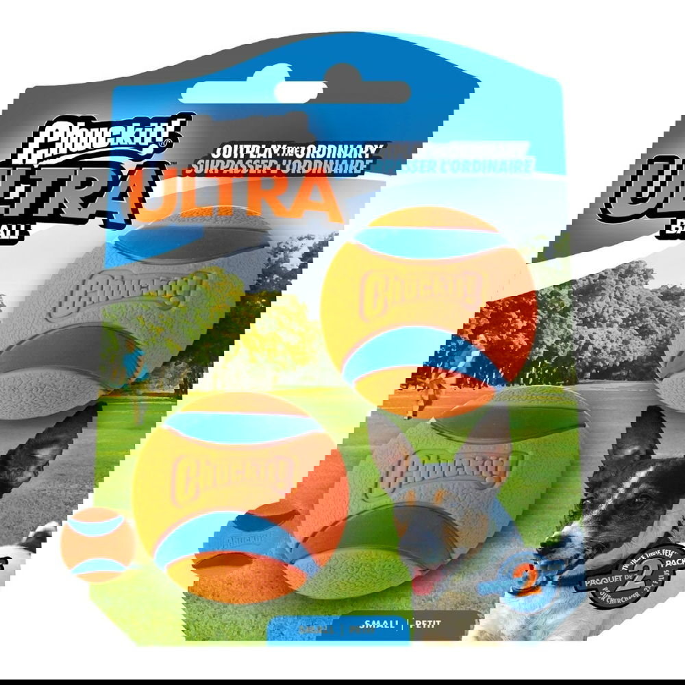 Chuckit Ultra Ball 2 kpl -koiran pallot nostavat noutoleikit aivan uudelle tasolle! Näissä palloissa yhdistyvät pomppivuus, kelluvuus ja erinomainen näkyvyys – kaikki, mitä koiran kanssa touhuaminen vaatii. Extra-paksu kumiydin tekee pallosta kestävän, mutta se on silti hellävarainen koiran suulle. Chuckit Ultra Ball -koiran pallojen tärkeimmät edut: Yhteensopiva Chuckit-heittimien kanssa – saa pallon lentämään pidemmälle ja leikit jatkumaan pidempään. Pallonheittovarren avulla voit treenata myös tokon tyhjään lähetystä. Extra-paksu kumiydin ja laadukas materiaali tekevät pallosta kestävän ja miellyttävän käyttää. Pomppii ja kelluu – täydellinen niin maalle kuin veteen. Vahva ja kestävä, mutta silti hellä koiran suulle – mukava noutaa kerta toisensa jälkeen. Vesileikkeihin sopiva – pallo kelluu pinnalla ja on helppo napata mukaan vedestä. Kirkkaat värit parantavat näkyvyyttä – pallo löytyy helposti myös innokkaimmissa leikeissä. Kokosuositukset: S-koko: sopii 0–9 kg koirille M-koko: sopii 9–27 kg koirille Huomioi! Valvo aina koiraa sen leikkiessä pallon kanssa ja poista pallo käytöstä, jos se rikkoutuu.