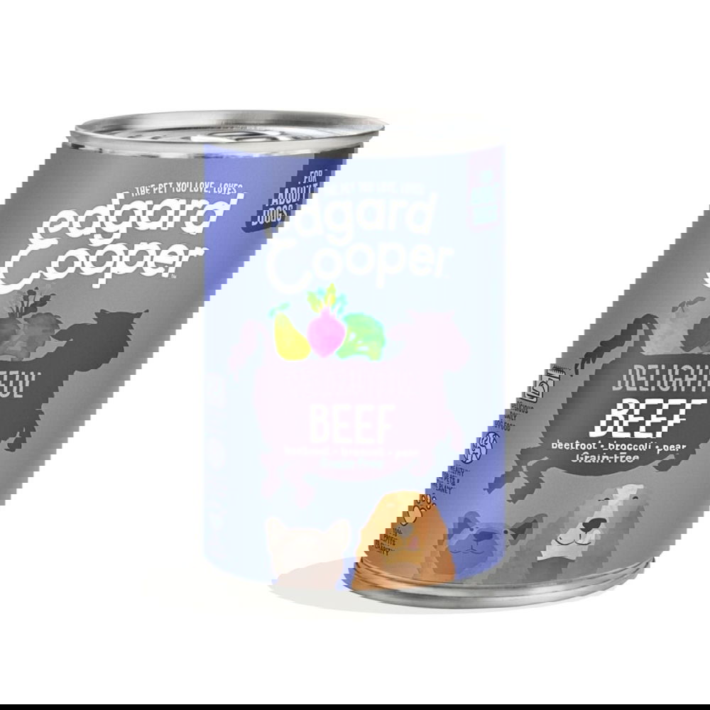 Edgard & Cooper Beef 400 g – Luonnollinen viljaton märkäruoka koirille Edgard & Cooper Beef on maistuva märkäruoka, jossa pääraaka-aineena on mehevä naudanliha (60 %). Tämä ravitseva resepti on höystetty vihanneksilla, hedelmillä ja huolella valituilla yrteillä, jotka tukevat koiran kokonaisvaltaista hyvinvointia. Mukana on myös prebiootteja (MOS & FOS), jotka auttavat vatsan ja suoliston tasapainossa. Luonnollisista raaka-aineista valmistettu ateria ei sisällä keinotekoisia väri- tai makuaineita. Tärkeimmät hyödyt ja ominaisuudet: 60 % naudanlihaa – laadukas ja maistuva proteiininlähde. Lisänä vihanneksia ja hedelmiä, kuten porkkanaa, päärynää ja punajuurta. Prebiootit MOS ja FOS tukevat suoliston hyvinvointia. Yrttisekoitus, jossa mm. fenkolia, kamomillaa ja siankärsämöä. Täysravinto: tarjoa sellaisenaan tai kuivaruoan kanssa. Vain luonnollisia raaka-aineita – ei keinotekoisia väri- tai makuaineita. 107 kcal / 100 g – tasapainoinen energia-aateria arkeen. Tarjoile huoneenlämpöisenä ja varmista aina, että koiralla on raikasta vettä saatavilla. Säilytä avattu purkki jääkaapissa ja käytä 2 päivän sisällä.