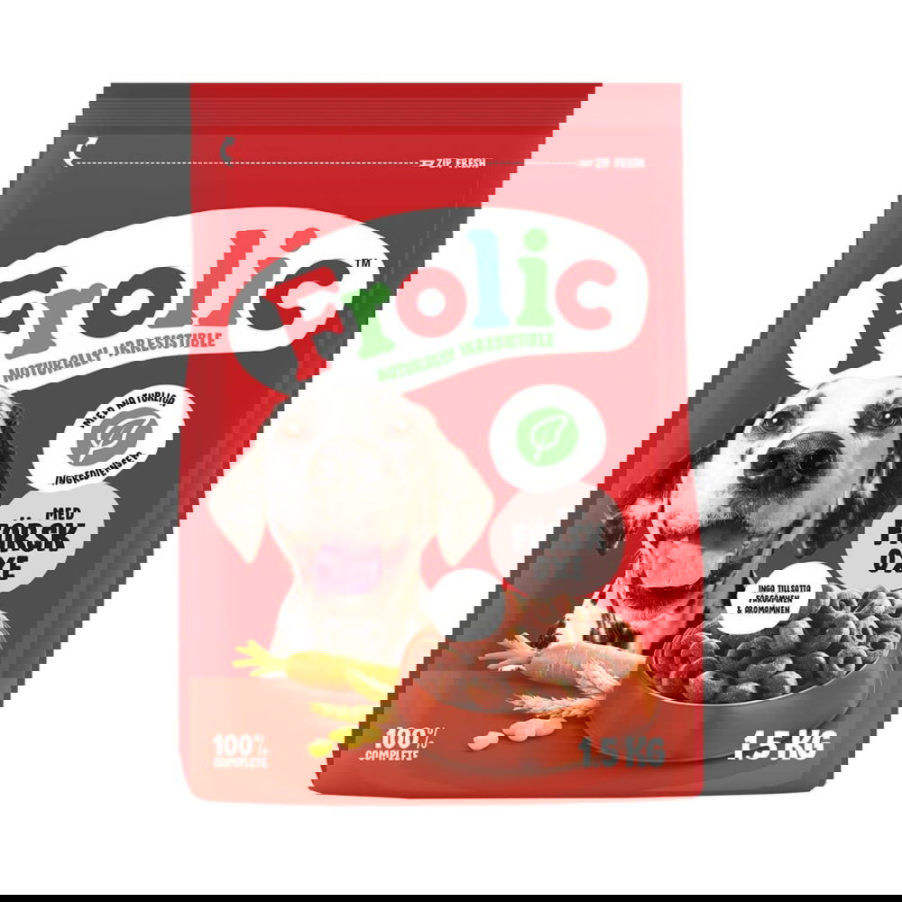 Frolic on mehukas ja maistuva puolikostea koiranruoka. Renkaanmuotoisissa paloissa on tuoretta lihaa: useimpien koirien mielestä niin herkullista, että voit käyttää sitä myös palkkiona. Palat on helppo murtaa tarvittaessa sormin pienemmiksi palkitsemisherkuiksi. Tasapainoinen koostumus on täysravintoa ilman keinotekoisia aromeja ja sisältää vitamiineja, kivennäisiä ja kuituja. Sisältää luonnollisia raaka-aineita. Ei lisättyjä keinotekoisia väriaineita tai sokeria. Ei sisällä palmuöljyä. Pakkauskoko 1,5 kg.