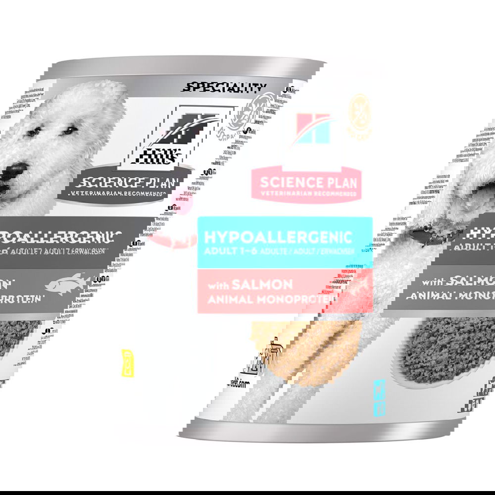 Hill's Science Plan Dog Hypoallergenic Salmon – herkkävatsaisen koiran hellä märkäruoka Hill's Science Plan Dog Hypoallergenic Salmon on herkkävatsaisille ja herkkäihoisille koirille suunniteltu täysravinto. Reseptin perustana on lohi (10 %) sekä tarkoin valitut kasvipohjaiset ainesosat, jotka auttavat vähentämään ruoansulatuskanavan kuormitusta ja ylläpitämään koiran ihon hyvinvointia. Pehmeä rakenne ja mieto maku tekevät ruoasta helposti sulavan ja miellyttävän myös herkimmille koirille. Tärkeimmät hyödyt ja ominaisuudet Hypoallergeeninen resepti: sisältää tarkkaan valittuja, hyvin siedettyjä ainesosia 10 % lohta: luonnollisia rasvahappoja ihon ja turkin tueksi Hellä vatsalle: helposti sulavat peruna- ja hernepohjaiset raaka-aineet Tasapainoinen ravinto: vitamiineilla ja mineraaleilla täydennetty täysravinto Kohtalainen rasvapitoisuus: sopii useimmille herkkävatsaisille koirille. Kenelle tämä ruoka sopii? Koirille, joilla on ruoka-aineherkkyyksiä tai iho-oireita. Herkkävatsaisille koirille. Koirille, jotka tarvitsevat miedon ja helposti sulavan aterian. Nirsommille koirille, joille lohi maistuu hyvin. UKK – usein kysytyt kysymykset 1. Voiko Hill's Hypoallergenic Salmon -märkäruokaa antaa pelkästään? Kyllä, tämä on täysravinto ja sopii päivittäiseen käyttöön sellaisenaan. 2. Onko tämä hyvä valinta herkkäihoiselle koiralle? Kyllä – lohi sisältää luonnollisia omega-rasvahappoja, jotka tukevat ihon ja turkin hyvinvointia. 3. Käykö tämä ruoka sekaruokintaan kuivaruoan kanssa? Kyllä, märkäruoka lisää maittavuutta ja nesteytystä kuivaruoan ohessa. Yhdistä esim. vastaavaan kuivaruokaan Hill's Science Plan Hypoallergenic Medium Salmon.