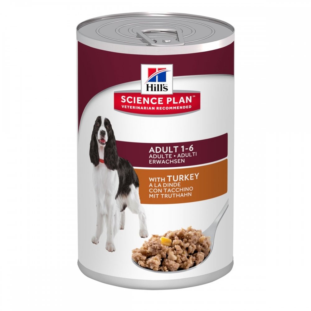 Hill's Science Plan Canine Turkey 370 g on koiran märkäruoka normaaliaktiivisille 1-6-vuotiaille koirille. Pehmeä koostumus on herkullinen ja tukee koiran yleistä hyvinvointia. Täysravinto sopii tarjottavaksi sellaisenaan tai kuivaruoan kanssa. Sisältää korkealaatuista proteiinia. Helposti sulava koostumus. DHA-rasvahapot tukevat mm. aivojen normaalia toimintaa ja näkökykyä. Antioksidantit ovat hyväksi vastustuskyvylle.