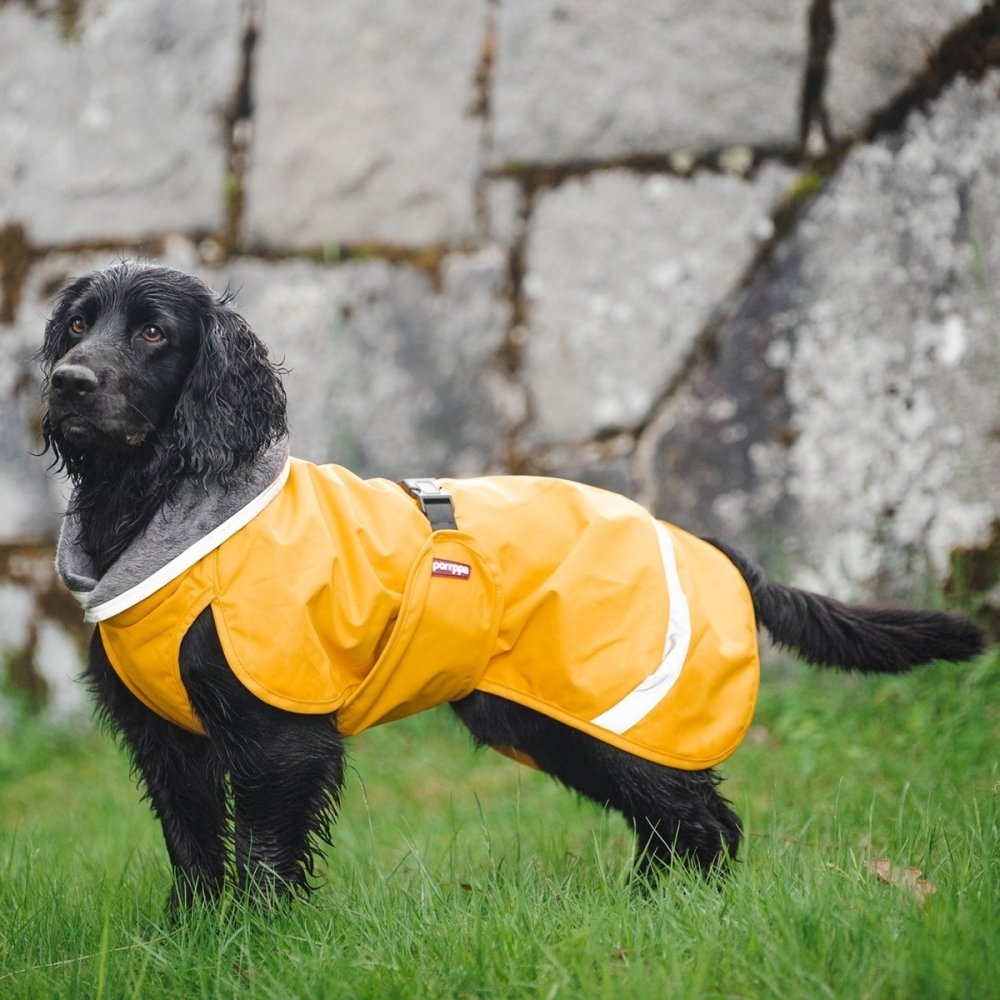 KevytPomppa on tyylikäs koiran välikausitakki, joka suojaa sateelta ja tuulelta. Takin pintakerros on vedenpitävää kalvokangasta 100 % kierrätetyistä PET-pulloista. Vuori on sähköistymätöntä neulosta, jonka pinnassa on pehmeä viimeistely – se ei sähköistä tai takuta koiran turkkia. Curry-väri antaa näkyvyyttä.   KevytPomppa, suomalaista osaamista Suomen sääolosuhteisiin KevytPomppa-koiran kuoritakki on suunniteltu suojaamaan koiraa kaikissa sääolosuhteissa tuulelta ja sateelta. Pitää koiran kuivana kaatosateellakin. Tarkoin harkitut yksityiskohdat ja muotoilu suojaavat koiraa mukavuudesta ja liikkuvuudesta tinkimättä. Suomessa suunniteltu Pomppa koiran takki on luotu Suomen sääolosuhteisiin.  KevytPomppa suojaa kolealla sadesäällä. Viluisen koiran sadetakki. Välikausitakki metsäretkistä kaupunkikävelyyn. Suojaa turkkia takkuuntumiselta ja likaantumiselta. Mahtuu pieneen tilaan ja kuivuu nopeasti. Kätevä ottaa mukaan esim. vaellukselle. Heijastimet kauluksessa ja takasaumassa tuovat näkyvyyttä pimeällä. Sopii käytettäväksi JumppaPompan päällä kuoritakkina. Takin suuri käännettävä kaulus suojaa koiran niskaa ja kaulaa. Suuri kaula-aukko antaa koiralle vapauden liikuttaa päätä ja kaulaa häiriöittä. Kauluksessa on taluttimelle valmis uloskulku, jonka läpi taluttimen voi laittaa kauluksen ollessa ylhäällä. Leikkaukset takin etu- ja takaosassa suojaavat koiran lihaksia ja antavat koiralle vapauden liikkua normaalisti. Hyvä muotoilu takaa hyvän istuvuuden, jolloin takki myötäilee koiran liikkeitä eikä esim. kuminauhoja tarvita pitämään takkia koiran päällä. Takin vatsakappale suojaa koko vatsan ja asettuu koiran vyötärölle pitämään takkia paikoillaan. Vatsakappaleen muotoilu sopii myös uroskoirille. Vatsakappaleen kiinnityslukko on kaareva, eikä paina tai hankaa koiraa. Materiaalit: Vedenpitävä pintakangas on 100 % kierrätetyistä PET-pulloista.  Vuori sähköistymätöntä neulosta pehmeällä viimeistelyllä, ei takuta turkkia. Hengittävyys 5000 g/m2/24 h, vedenpitäyys 5000 mm Pesuohjeet: 30 astetta hienopesu, ei linkousta, ei silitystä  Oikean takkikoon valinta KevytPompan malli on sama kuin PerusPompassa. Ohuemman sisävuoren vuoksi KevytPomppa on PerusPomppaa väljempi mitoitukseltaan. Pomppa-koiran vaatteiden koot on mitoitettu koiran selänpituuden mukaan. Selänpituus saadaan mittaamalla matka koiran kaulapannasta hännän tyveen. Valitse koirasi mittaa vastaava lähin kokonumero. Jos mitta osuu kokojen väliin, riippuu koon valinta käyttötarkoituksesta ja koiran tyypistä. Raskasrakenteinen, häntää alhaalla kantava koira valitsee isomman koon. Siro, pystyhäntäinen ja metsäkirmailuun takkia tarvitseva koira ottaa pienemmän koon.