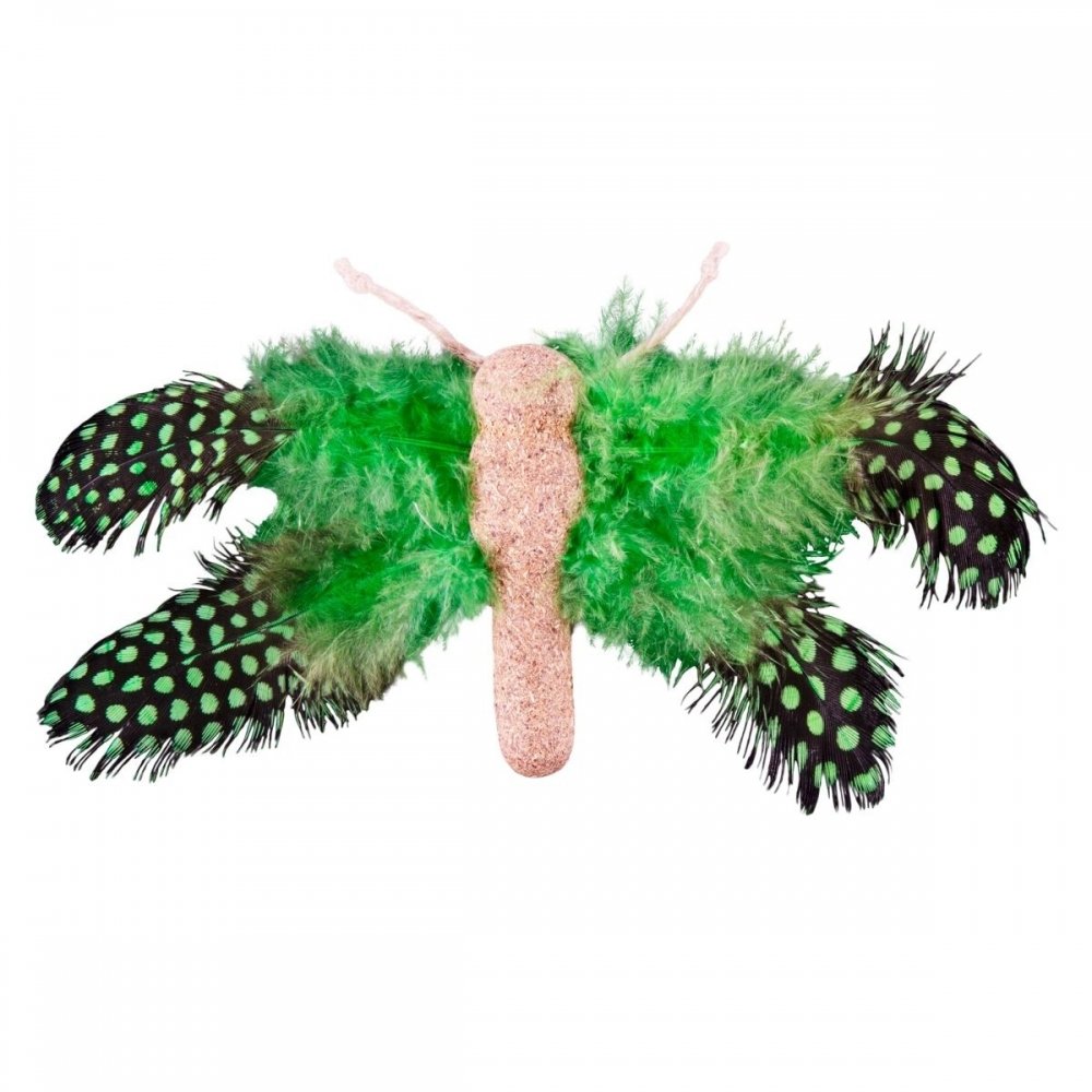 Kissanminttupuristesudenkorento Little&Bigger JungleParty Flies innostaa kissaa leikkimään! Kissan lelussa on runsaasti höyheniä sekä puristettua kissanminttua lisäämään kissan kiinnostusta. Koko 10 cm.
