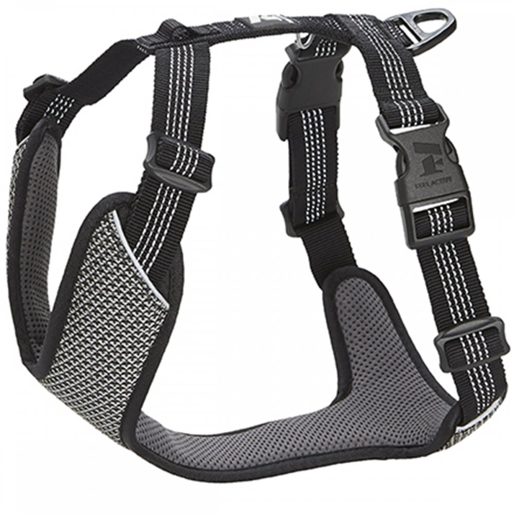 Koiran heijastinvaljaat Feel Active Reflective näkyvät pimeässä joka puolelta erinomaisesti ja varmistavat, että koirasi tulee huomatuksi. Koko pehmustettu etuosa on voimakkaasti heijastaa materiaalia ja rinnanympärystässä on 3M-heijastinompeleet. Ergonominen muotoilu antaa tilaa koiran liikkeille ja leveä etuosa jakaa paineen tasaisesti, jos koira vetää hihnassa. Koiran valjaiden malli istuu monen tyyppisille koirille erittäin hyvin. Rintakappale on melko kapea, joten se sopii myös kapearintaisille koirille, mutta pitää silti valjaan koiran päällä istuvana ja mukavana. Valjaista voi säätää sekä kaulan- että rinnanympäryksestä sopimaan koirallesi. Pikalukot molemmin puolin valjaita tekevät niistä helpot pukea ja riisua nostamatta etujalkaa. Valjaiden selkäosassa on pieni kangaslenkki nimilaattaa tai huomiovaloa varten. Kestävä materiaali on ommeltu huolellisesti. Hyvä työnlaatu yhdessä korkealaatuisten metalliosien ja -pikalukkojen kanssa takaavat valjaiden pitkän käyttöiän. Koiran heijastinvaljaat antavat erinomaisesti näkyvyyttä hämärässä. Säädettävä kaulan- ja rinnanympärys. Ergonominen malli ei häiritse koiran liikkeitä. Sopii myös kapearintaisille koirille. Lenkki nimilaatalle tai valolle. Väri musta. Lue lisää valjaiden koko-opas -välilehdeltä.