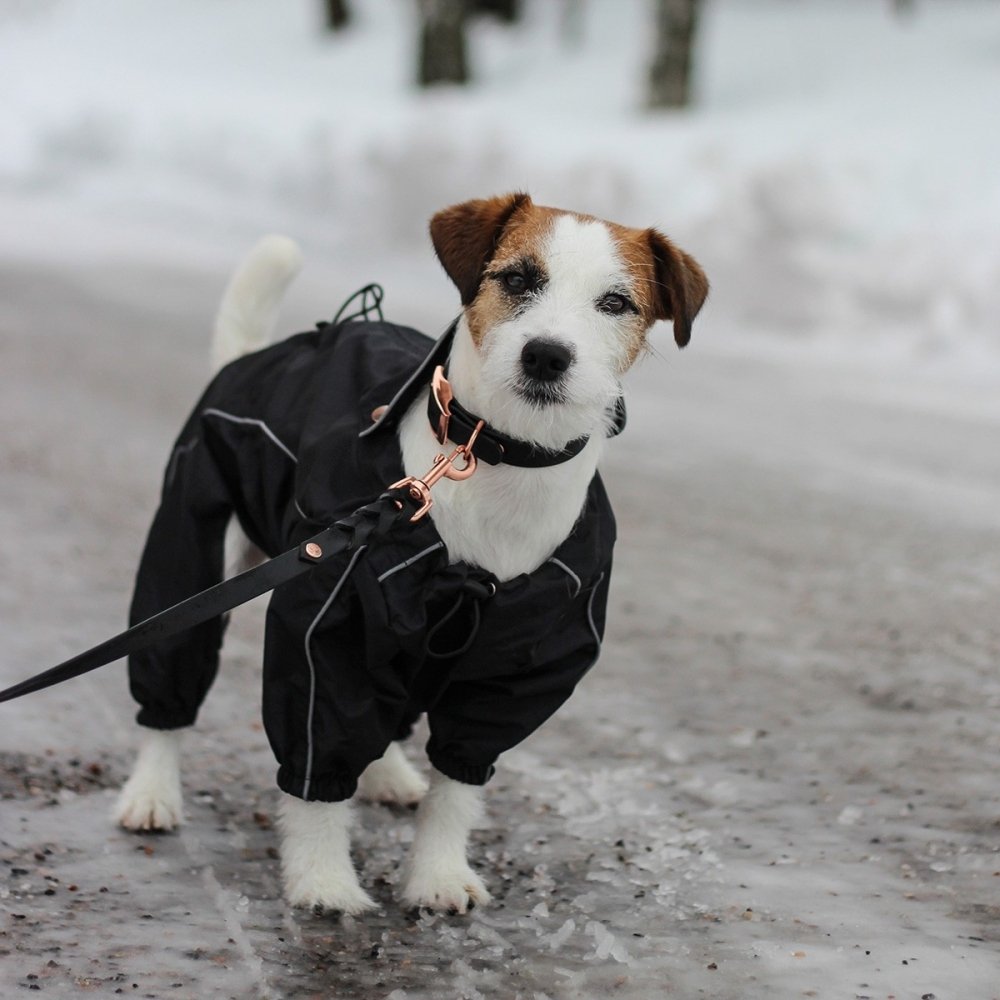 Koiran sadehaalari Manchester pitää koiran kuivana sadesäällä. Sadehaalari suojaa kura- ja sadekelillä myös koiran jalat kastumiselta ja likaantumiselta: käytännöllinen erityisesti pitkäkarvaisilla koirilla. Koiran kurahaalarin voi huuhdella ulkoilun jälkeen sen ollessa vielä koiran päällä, niin tassut puhdistuvat samalla. Mustassa sadehaalarissa on heijastinraidat, jotka lisäävät näkyvyyttä ja turvallisuutta pimeällä. Vetoketju on selässä ja se suljetaan hännästä kohti niskaa: aloita pukeminen takajaloista. Vetoketjun alla on kangas, joka ehkäisee karvojen päätymistä vetoketjun väliin. Kurahaalarin vyötäröllä on kuminauha kahdella stopparilla, joiden avulla voit säätää haalarin sopivaksi. Koiran haalarissa on neppareilla irrotettava kaulus ja kaulanympärystää voi säätää. Koiran sadehaalarin voi konepestä 30 asteessa.