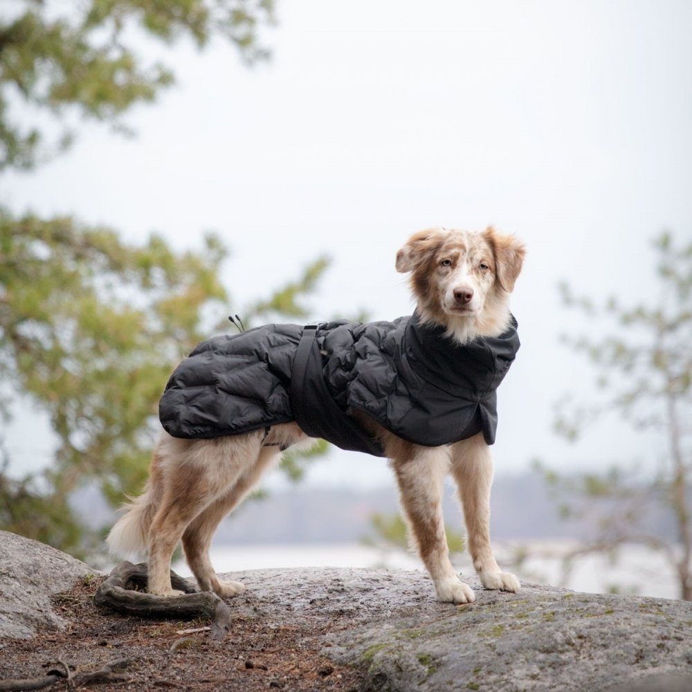 Koiran toppatakki Feel Active Haga on kevyt, pehmeä ja suojaava koiran talvitakki.  Koirantakin tikkaus on tehty uudenlaisella tekniikalla, joka on tuttu ihmisten teknisistä toppavaatteista ilman läpitikkausta. Thinsulatetoppaus yhdessä villasekoitteen kanssa tekevät takista sekä lämpimän että tuulenpitävän. Ulkopuolen vedenpitävyys on 4000 mm. Haga-koiran toppatakissa on käytännöllinen muotoilu, joka yhdessä säädettävän selänpituuden ja kauluksen kanssa tekevät takista istuvan. Kauluksen sisäpuolella on lisäksi tuubikaulus, joka suojaa kylmyydeltä ja tuulelta. Selässä on kaksisuuntaisella vetoketjulla avattava valjasaukko, joten takin kanssa voi käyttää monen mallisia valjaita. Takajalkalenkit pitävät takin helman paikoillaan koiran liikkuessa. Väri musta. Konepesu 30 asteessa samansävyisten kanssa.