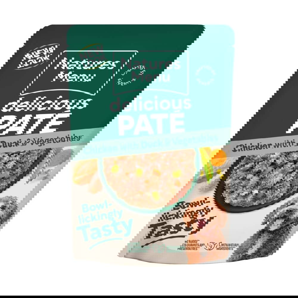 Natures:Menu Dog Kana & Ankka 300 g on herkullinen märkäruoka koirille luonnollisista raaka-aineista. Runsaasti herkullista kanaa ja mehevää ankkaa sisältävä täysravinto on pakattu käytännölliseen annospakkaukseen. Maukas märkäruoka sisältää kaikki tarpeelliset vitamiinit ja hivenaineet. Natures:menu kana & ankka on gluteenitonta ja maidotonta, eikä se sisällä lainkaan keinotekoisia väri-, maku- tai säilöntäaineita. Ruokintasuositus: Koiran paino Pussia / pv 1-5 1/3-1 ¼ 5-10 1 ¼-2 10–25 2-4 25–40 4-5 2/3 Vinkki: Natures:menu Dog -täysravinnot sopivat loistavasti täytettävien kumisten aktivointilelujen täytteeksi. Täytä kuminen aktivointilelu ja anna koiran tehdä hieman töitä ruokansa eteen. Jos haluat tehdä ruokailusta vielä haastavampaa, täytä aktivointilelu natures:menu-täysravinnolla ja pakasta täytetty lelu. Anna jäinen täytetty aktivointilelu koiralle puuhasteltavaksi.
