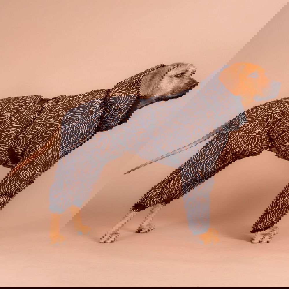 PAIKKA-koiran toppahaalari Winter Suit – lämmin ja vedenpitävä talviolosuhteisiin PAIKKA Winter Suit on Suomessa suunniteltu ja Pohjolan oloissa testattu laadukas koiran toppahaalari, joka pitää koirasi lämpimänä ja kuivana talven vaihtelevissa sääolosuhteissa. Vedenpitävä ulkokangas, lämmin mutta kevyt toppaus ja heijastava printtikuvio tekevät tästä haalarista täydellisen valinnan kylmiin ja lumisiin päiviin. Koiran toppahaalari lämmittää tehokkaasti ja estää myös lumipaakkujen kertymisen jalkakarvoihin. Tärkeimmät hyödyt ja ominaisuudet: • Vedenpitävä ulkokerros suojaa lumelta ja kosteudelta: vesipilariarvo 9000. • Lämmin ja kevyt toppaus tekee haalarista miellyttävän käyttää. • Heijastava printtikuvio parantaa näkyvyyttä pimeällä. • Ainutlaatuinen muotoilu ilman vetoketjua istuu monenlaisille koirille. • Sileä vuori lahkeissa helpottaa pukemista ja riisumista. • Säädettävä huppu, kaulus, vyötärö ja hihansuut. • Valjasaukko vetoketjulla tekee käytöstä helppoa: pue valjaat haalarin alle. UKK – Usein kysyttyä 1. Millaisille koirille toppahaalari sopii? Se sopii koirille, jotka tarvitsevat suojaa sekä kylmää että märkää vastaan – erityisesti talven pakkasiin ja lumikeleihin. Haalari on hyödyllinen sekä helposti paleleville lyhytkarvaisille kuin pitkäkarvaisille koirille: haalari ehkäisee lumipaakkuja jalkakarvoissa. 2. Onko haalari helppo pukea? Kyllä, haalarissa ei ole vetoketjua ja sileä vuori lahkeissa helpottaa pukemista. 3. Voiko haalarin pestä koneessa? Kyllä, sen voi pestä 30 asteessa hellävaraisella ohjelmalla. Suosittelemme pesua nurinpäin ja ilman huuhteluaineita.