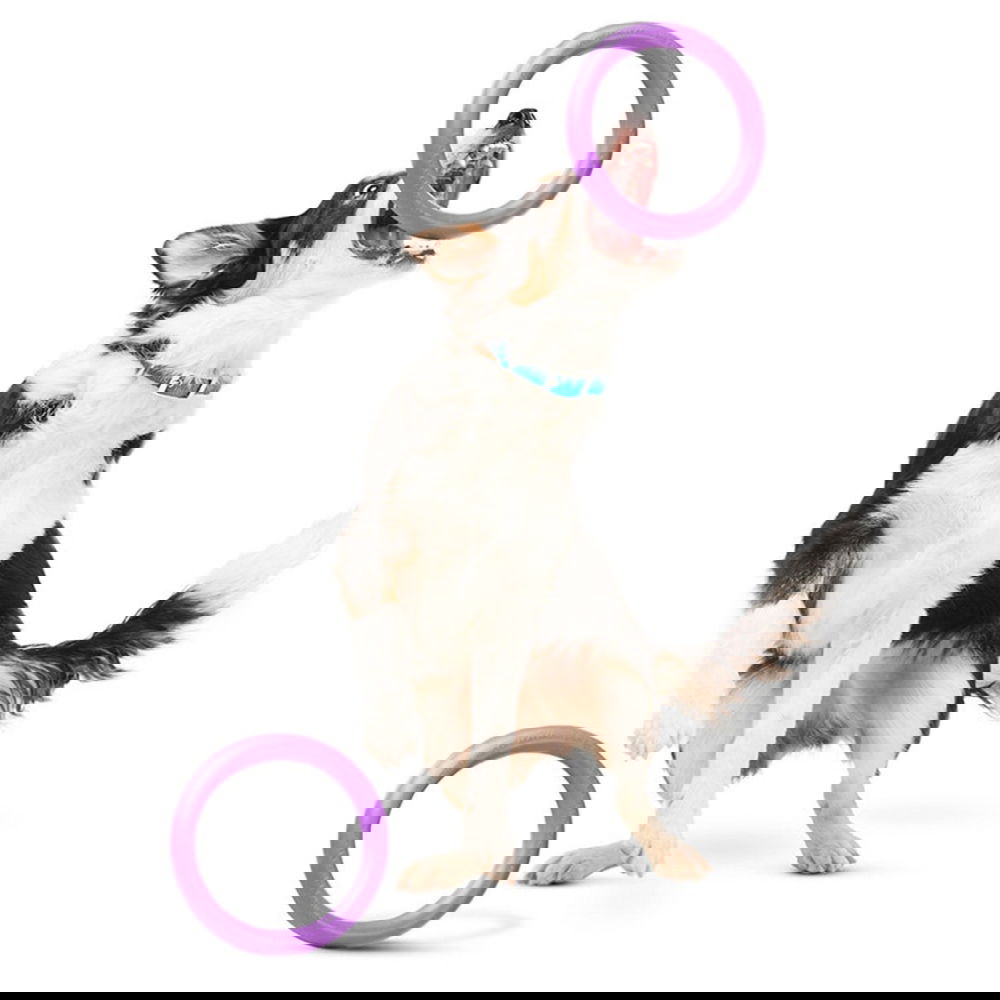 PULLER Collar Rengaslelu on kestävä ja kevyt koiran lelu veto- ja heittoleikkeihin. Kelluva koiran lelu on mainio myös vesileikkeihin! Pehmeä, uniikki materiaali on hampaille hellävarainen. Renkaita voi heittää ja vierittää maata vasten. Puller-renkaat on helppo huuhtaista puhtaaksi leikin päätteeksi. Kahden Puller-renkaan setti sopii hyvin kahden lelun leikkiin: toinen lelu on aktiivinen, toinen passiivinen. Leikitä koiraa vetolelulla ja kun koira tarttuu leluun ja vetää, anna sen vetää itseäsi ja voittaa. Sitten passivoi lelu, jolla koira sillä hetkellä leikkii ja samanaikaisesti ala leikittää toisella lelulla. Kehu koiraa, kun se vaihtaa lelua. Innosta koiraa aktiiviseen leikkiin ja kun se taistelee hyvin, lopeta taas sillä lelulla leikkiminen ja vaihda jälleen toiseen, aktiiviseen leluun. Puller sopii myös vauhtipalkkauksen opetteluun: kun koira nostaa yhden heitetyn lelun, kannusta koiraa juoksemaan takaisin ja heitä toinen lelu esim. taaksesi, jotta koira irrottaa renkaasta ja juoksee hakemaan toisen. Halkaisijat: XS: 12,3 cm, renkaan paksuus 1,5 cm S: 18 cm, renkaan paksuus 4 cm M: 20 cm, renkaan paksuus 6 cm L: 28 cm, renkaan paksuus 7 cm XL: 30 cm, renkaan paksuus 8 cm